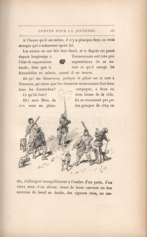 Alphonse Daudet (1840-1897) francia újságíró, író és drámaíró, a korabeli francia irodalmi élet közismert, könnyű tollú alakja. Elsősorban társasági regényeiről, illetve Provance-ban játszódó történeteiről ismert, legnevezetesebb figurája a nagy nekibuzdulásairól nevezetes déli hazafi, Tartarin de Tarascon. Gazdagon illusztrált mesegyűjteményünket híres hőséről szóló humoros történet zárja; a Tartarin-komédia előtt tanulságos, érzelmes és hazafias mesék egyaránt felvonulnak. Oldalszámozáson belül 22 egész oldalas és számos szövegközti illusztrációval.