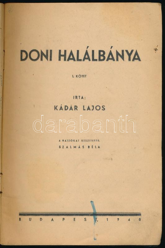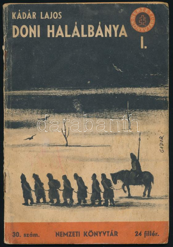 Kádár Lajos: Doni halálbánya. I. köt. Szalmás Béla rajzaival. Nemzeti Könyvtár 30. sz. Bp., 1940, Stádium, 64 p. A borító Gádor Emil munkája. Kiadói tűzött papírkötés, kissé viseltes borítóval. A mű szerepel az 1945-ben az Ideiglenes Nemzeti Kormány által betiltott, fasiszta és szovjetellenes könyvek listáján.