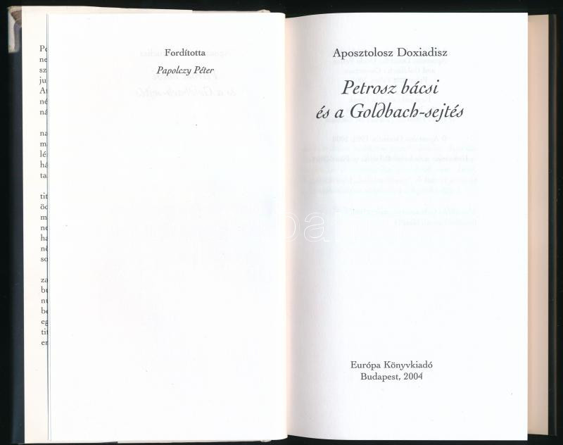 Aposztolosz Doxiadisz: Patrosz bácsi és a Goldbach-sejtés. Ford.: Papolczy Péter. Bp., 2004, Európa, 209+[3] p. Kiadói kartonált papírkötés, kiadói papír védőborítóban.