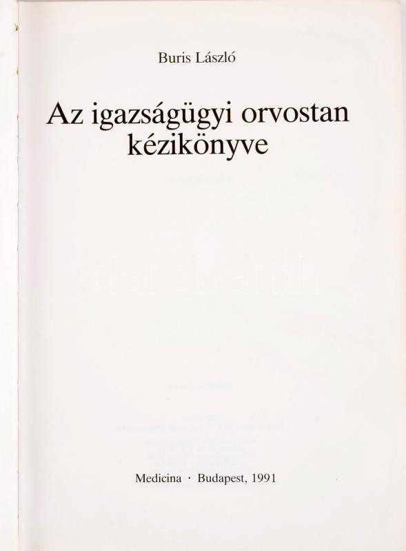 Buris László: Az igazságügyi orvostan kézikönyve. Bp., 1991, Medicina. 397p. Kiadói kartonált kötés, kopottas állapotban.