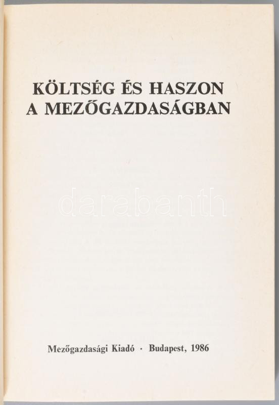 Csete László (szerk.): Költség és haszon a mezőgazdaságban. Bp., 1986., Mezőgazdasági. Kiadói papírkötés.