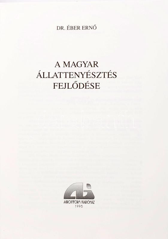 Éber Ernő: A magyar állattenyésztés fejlődése. [Bp.], 1996, Agroinform. Kiadói egészvászon-kötés.