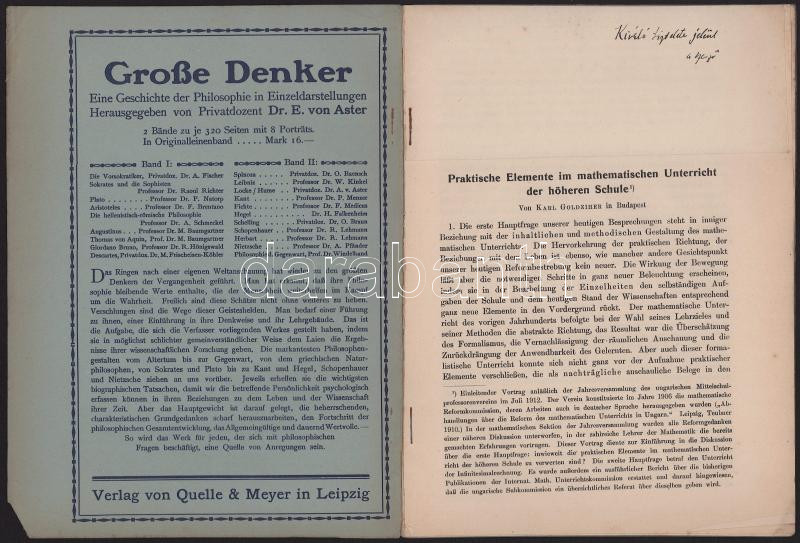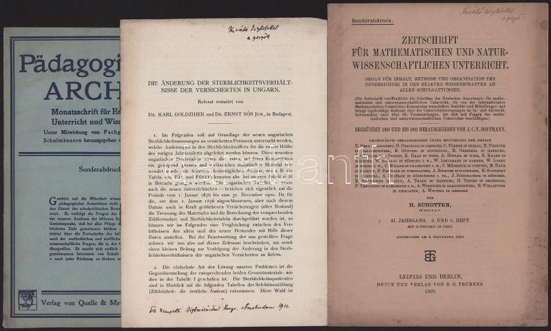 Goldziher Károly (1881-1955) matematikus által DEDIKÁLT 3 db német nyelvű különlenyomat.