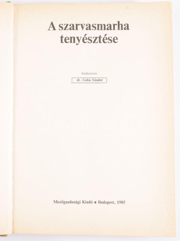 Guba Sándor (szerk.): A szarvasmarha tenyésztése. Bp., 1985, Mezőgazdasági Kiadó, 449+[3] p.+ 20 (fekete-fehér képek) t. Egyetlen kiadás. Kiadói kartonált papírkötés. Megjelent 4400 példányban.