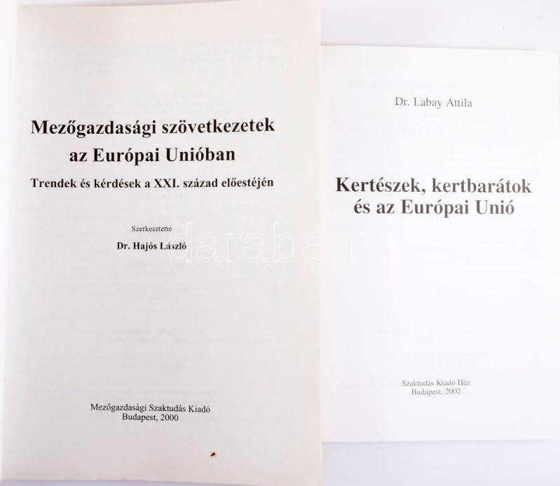 Mezőgazdasági szövetkezetek az Európai Unióban. Trendek és kérdések a XXI. század előestéjén. Szerk.: Hajós László. Bp., 2000, Mezőgazdasági Szaktudás Kiadó. Kiadói papírkötés. + Labay Attila: Kertészek, kertbarátok és az Európai Unió. Bp., 2002, Szaktudás Kiadó Ház. Kiadói papírkötés.