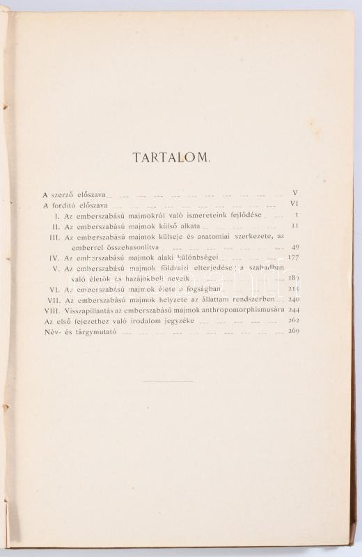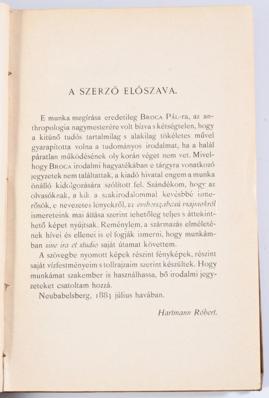 Hartmann Róbert: Az emberszabású majmok és szervezetök. Ford.: Thirring Gusztáv. Bp., 1888, K. M. Természettudományi Társulat, 279+1 p. Kiadói egészvászon-kötés.