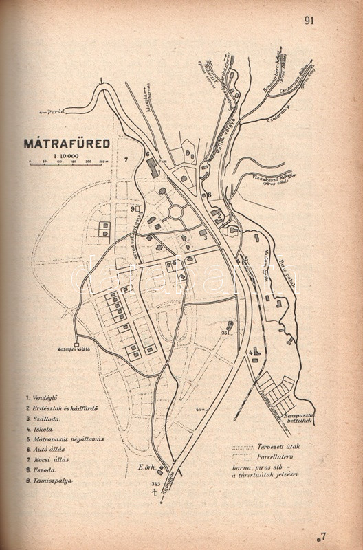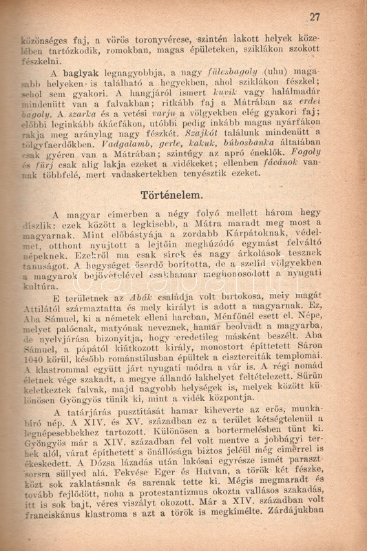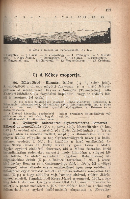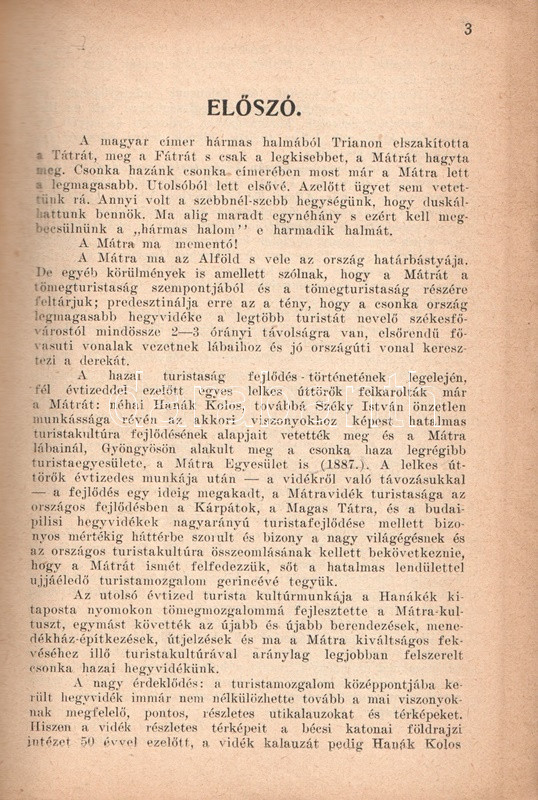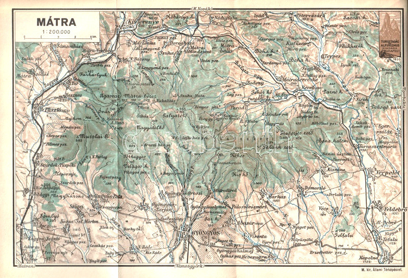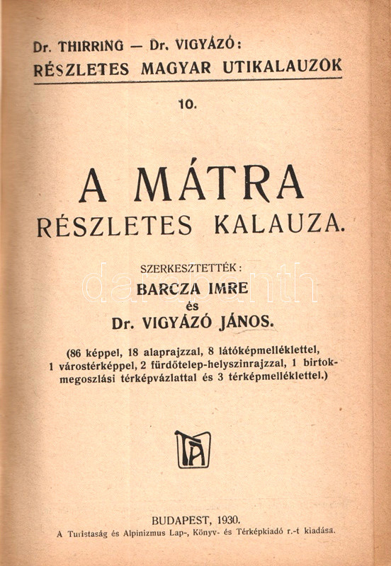 A Vigyázó János (1888-1962) jogász, túravezető és Barcza Imre (1880-1938) bibliográfus, túravezető által írt, szövegközti rajzokkal, alaprajzokkal, kihajtható panorámaképekkel gazdagon illusztrált kiadvány a Mátra vidékére kalauzol. A térség iránti érdeklődés 1887-től számítható, a Mátra Egylet innentől munkálkodik a Budapesthez közel fekvő középhegység népszerűsítésén. Menedékházak, turistaházak kiépítése már a századfordulón megkezdődött, az igazi fellendülés azonban az 1920-as években indult meg, amikor egyéb magashegységi terepek híján a Mátra vált a hazai sísport kiemelt helyszínévé. Turisztikai kiadványunk bemutatja a Mátra természetföldrajzát, néprajzát, műemlékeit és látnivalóit (várait, várromjait és templomait), majd túrákat ajánl. Kiadványunk kiemelten foglalkozik a Galyatetőn, Parádon és a környéken épült menedékházakkal és turistaszállásokkal, homlokzatrajzok és alaprajzok kíséretében.