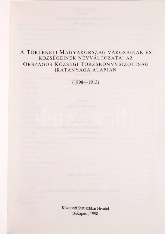 A történeti Magyarország városainak és községeinek névváltozatai az Országos Községi Törzskönyvbizottság iratanyaga alapján (1898-1913). Szerk.: Jeney Andrásné, Tóth Árpád. Bp., 1998, KSH, XIV+552+[2] p. Második, javított kiadás. Kiadói papírkötés.