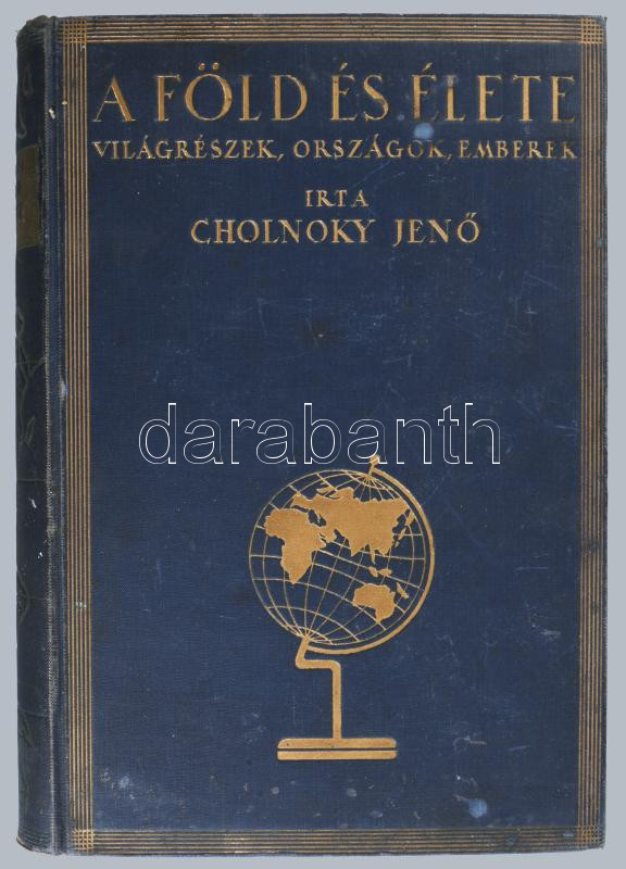 Cholnoky Jenő: A Föld és élete. I-VI. köt. Világrészek, országok, emberek. I. köt.: Európa. II. köt: Ázsia. III. köt.: Afrika. IV. köt. Amerika. V. köt.: Ausztrália, Oceánia és a sarkvidékek. VI. köt.: Magyarország földrajza. Bp., [1936-1937], Franklin. Gazdag képanyaggal illusztrálva. Térkép-mellékletekkel. Kiadói aranyozott egészvászon sorozatkötésben, kopott borítókkal, a II., III. és VI. kötetekből hiányzó térkép-mellékletekkel.