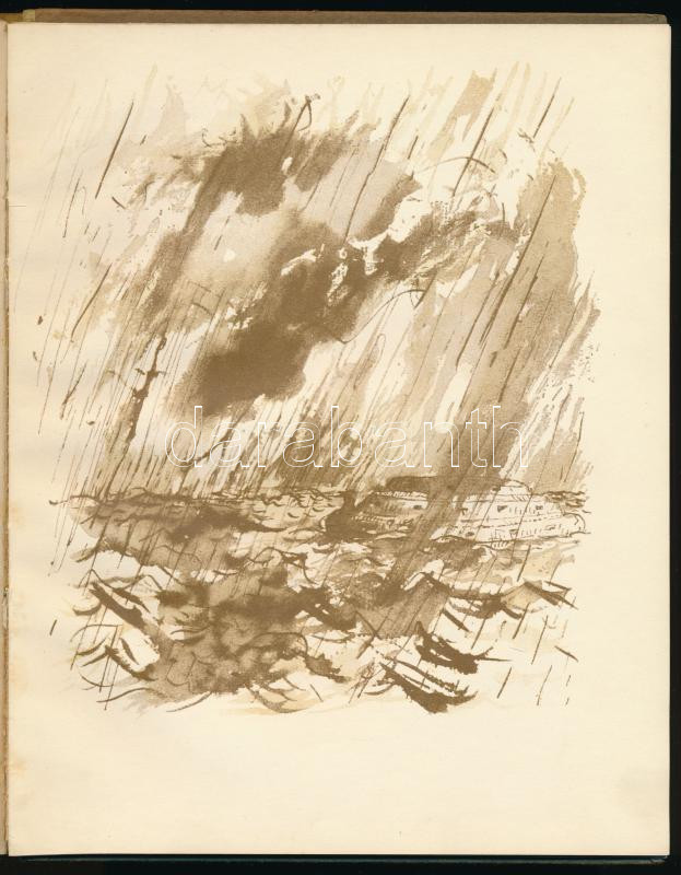 Az özönvíz. Károli Gáspár bibliafordítása szerint. Berény Róbert rajzaival. Hungária Könyvek 11. 1945, Hungária Nyomda. Félvászon kötés, belül a gerincnél kissé szétvált, kissé kopottas állapotban.