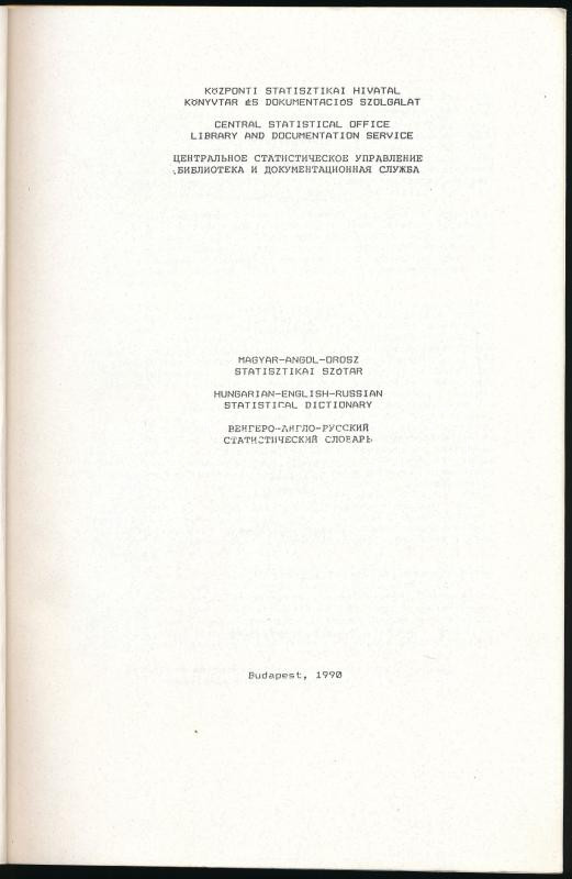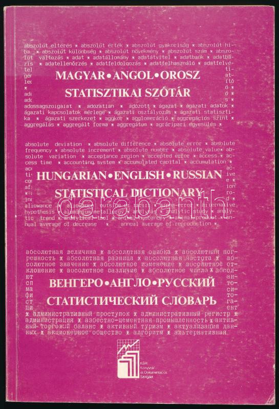 Fóti Istvánné - Csahók István (szerk.): Magyar-angol-orosz statisztikai szótár. Bp., 1990, KSH Könyvtár és Dokumentációs Szolgálat, 224 p. Kiadói papírkötés, kissé kopott borítóval.