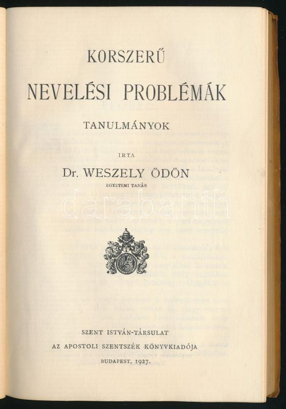 Weszely Ödön: Korszerű nevelési problémák. Tanulmányok. Bp., 1927, Szent István-Társulat. 217p. Kiadói papírkötés, kissé kopottas állapotban.