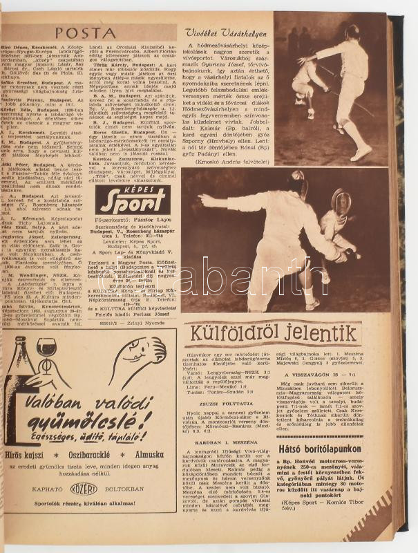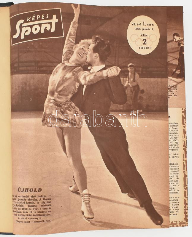 1960 Képes Sport teljes évfolyama egybekötve, VII. évf. 1-52. sz., félvászon-kötésben, nagyrészt jó állapotban