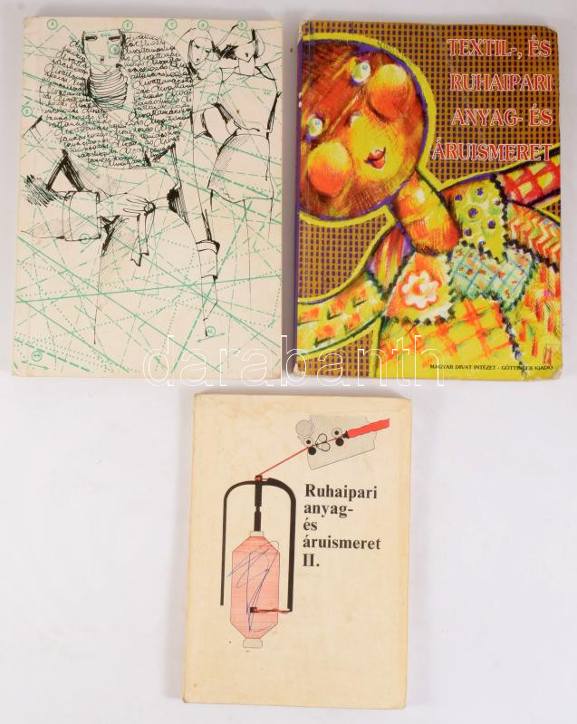3 db ruhaipari kiadvány: Nemzetközi divattanácskozás Prága 1978. Bp., 1978, Ipari Szövetkezetek Országos Tanácsa. Kiadói papírkötés. + Bock Sándor: Ruhaipari anyag- és áruismeret II. Bp., 1993, Műszaki Könyvkiadó. Kiadói papírkötés, kissé viseltes borítóval, helyenként ceruzás bejegyzésekkel. + Textil, és ruhaipari anyag- és áruismeret. Bp.-Veszprém, 1997, Magyar Divat Intézet - Göttinger Bt. Kiadói papírkötés, viseltes borítóval, helyenként bejegyzésekkel.
