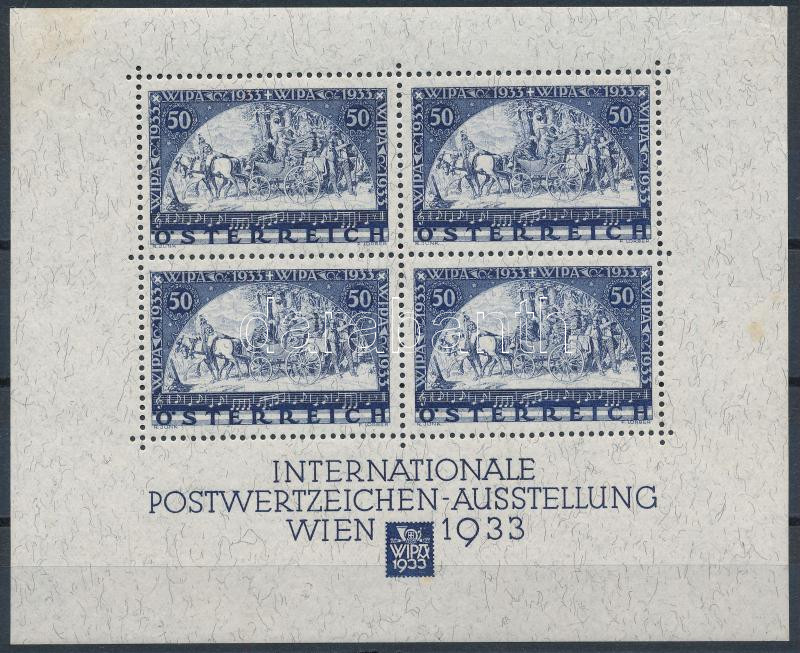 Ausztria 1933 WIPA blokk kifogástalan állapotban, a beragasztásból származó jelentéktelen ragasztónyomokkal (Mi EUR 3.750.-)
