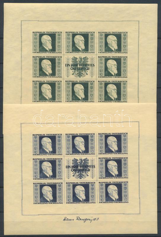 Ausztria 1946 Renner vágott kisívsor japán papíron. Luxus minőség!! (Mi EUR 2.400.-)