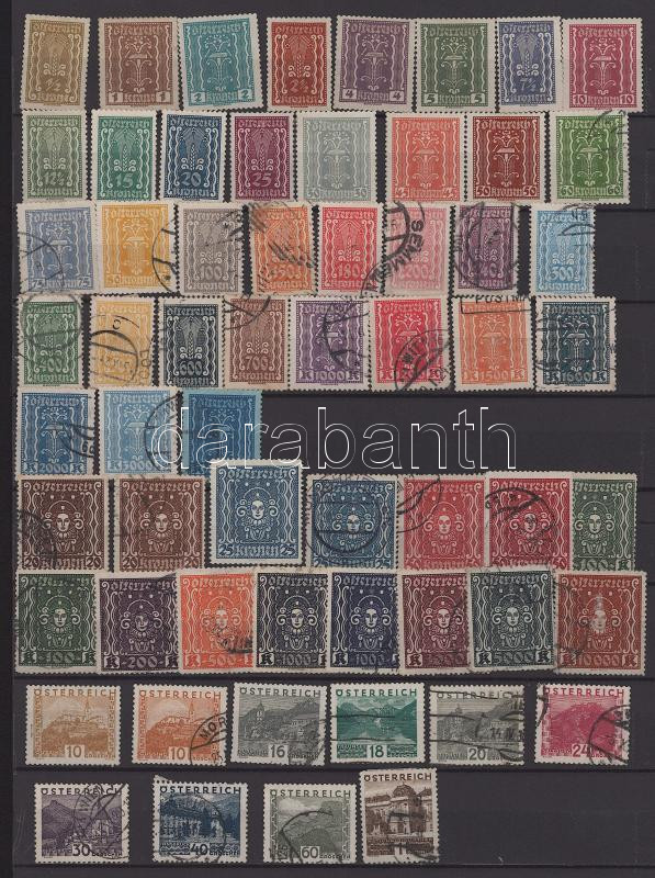 Ausztria 14 db sor 1908-tól, benne kb 200 db bélyeg, 2 db kétoldalas A4-es berakólapon