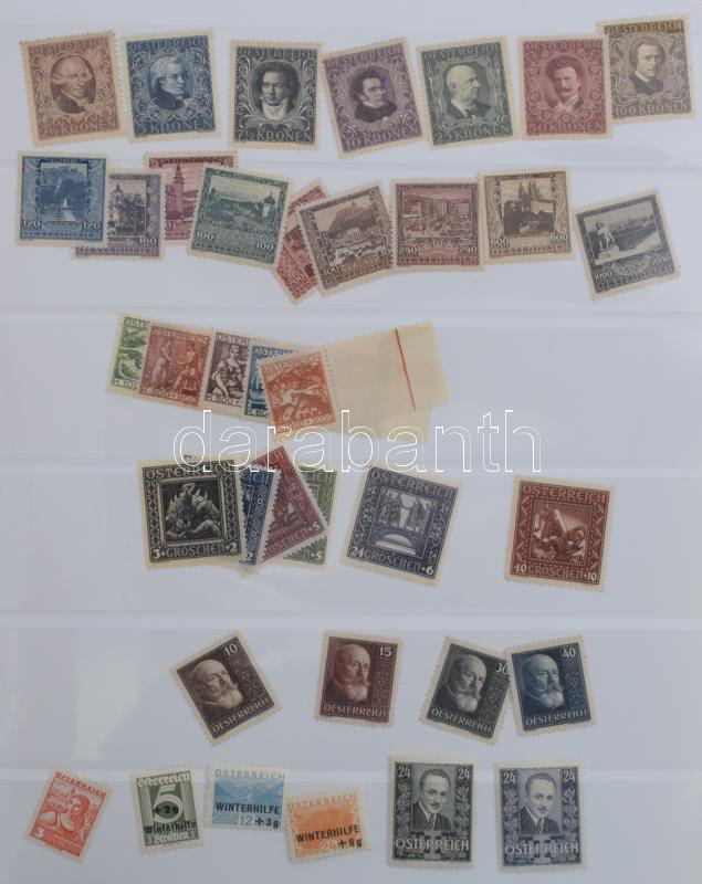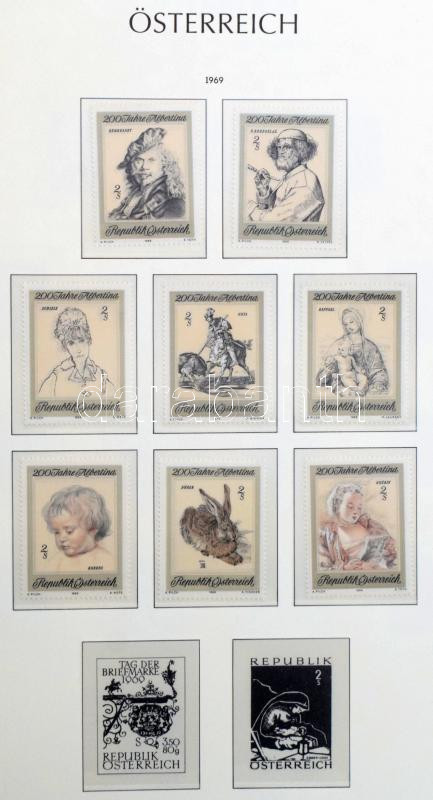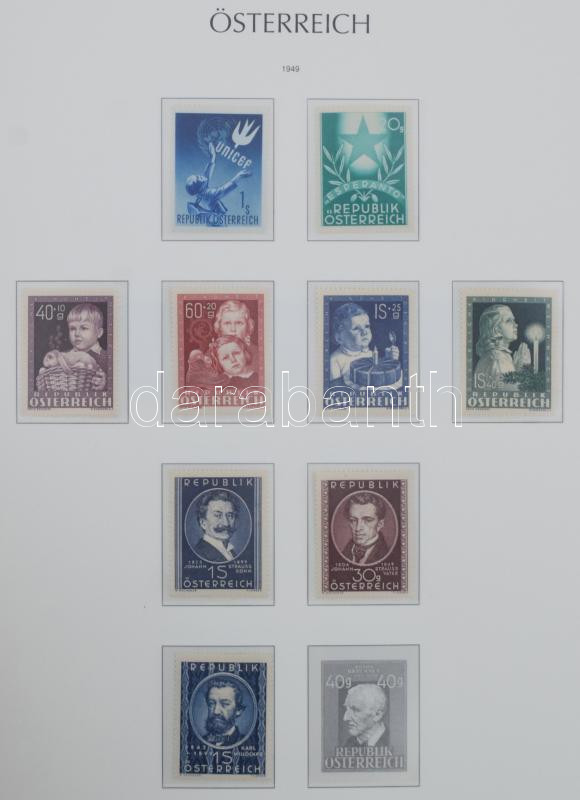Ausztria gyűjtemény kezdemény 1945-1969 + néhány korábbi és későbbi kiadás jobbakkal. Szép, de erősen kiegészítésre szoruló anyag szinte új állapotú Leuchtturm falcmentes előnyomott albumban + 4 berakólapon.