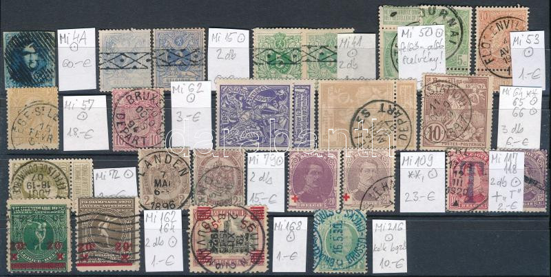 Belgium összeállítás klasszikus bélyegekből Mi 4A-216 között válogatott darabok (Mi EUR 153.-)