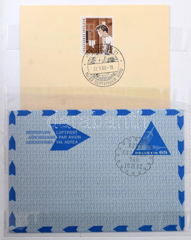 Berlin 7 db alkalmi bélyegzés + Svájc 3 db légiposta boríték bélyegzéssel + USA 2 db használatlan díjjegyes boríték, közepes berakóban