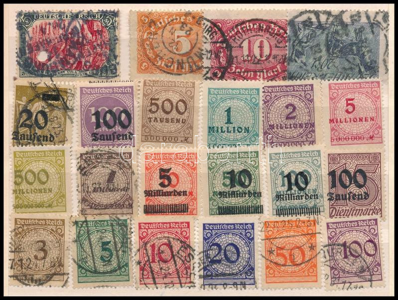 Deutsches Reich 22 db bélyeg elcsúszott értékszámmal vagy elfogazással + Mi 819 ívsarki húszastömb