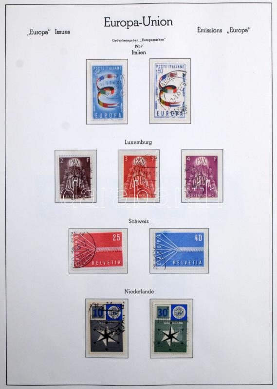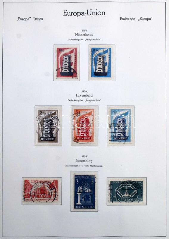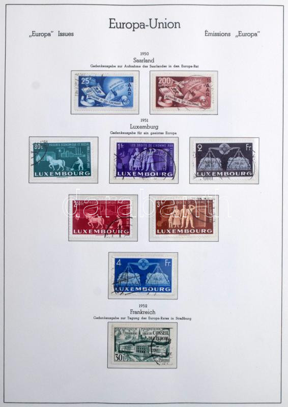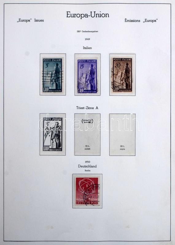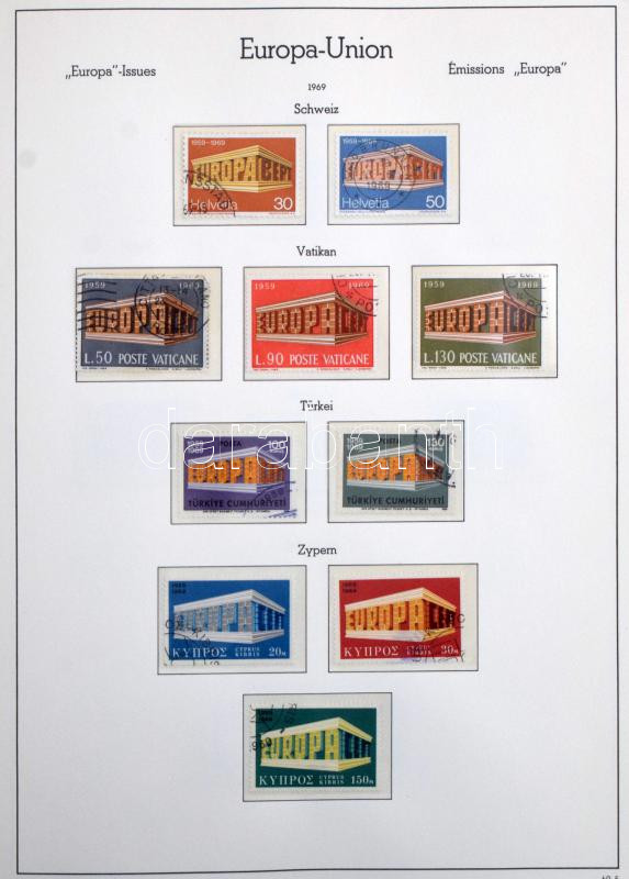 Egyesült Európa 1949-1973 Europa CEPT és Europa motívum bélyegek gyűjteménye, csaknem teljes anyag a jó motívum kiadásokkal, Leuchtturm falcmentes előnyomott albumban
