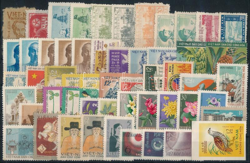 Észak-Vietnam 54 db (48 klf) bélyeg, ahogy kiadták, közte komplett sor is