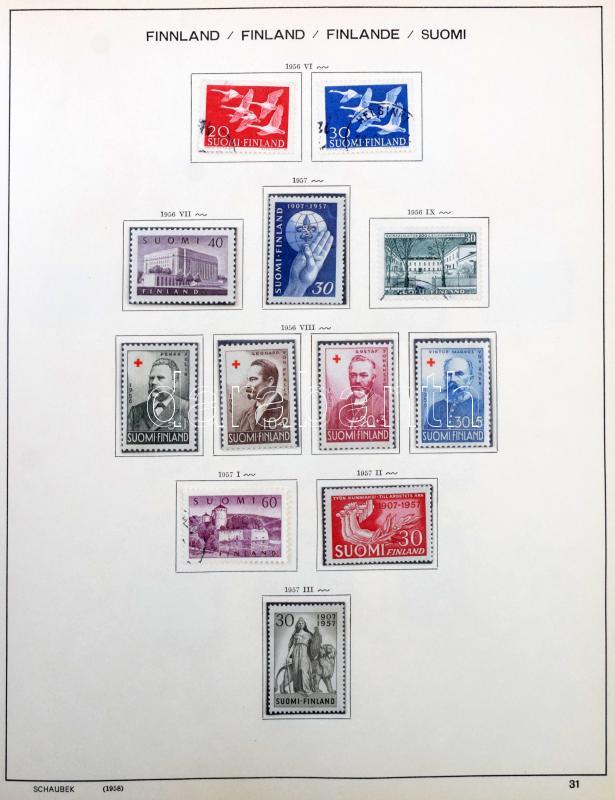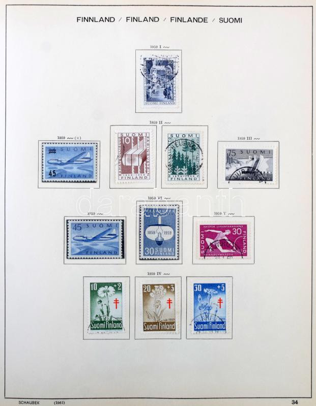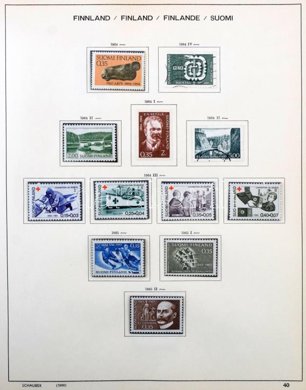 Finnország gyűjtemény 1945-1982 Schaubek albumban, a bélyegek nagy része filázva, minőségre átnézetlen