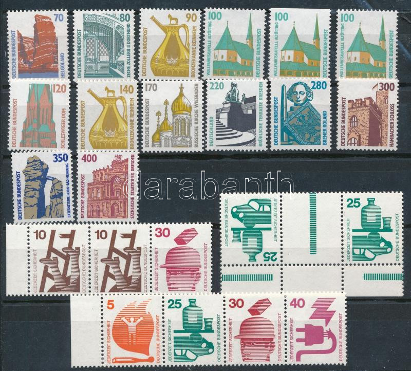 NSZK 30 klf forgalmi bélyeg az 1980-90-es évekből + 3 db összefüggés bélyegfüzetből, köztük egy ívközéprészes fordított pár