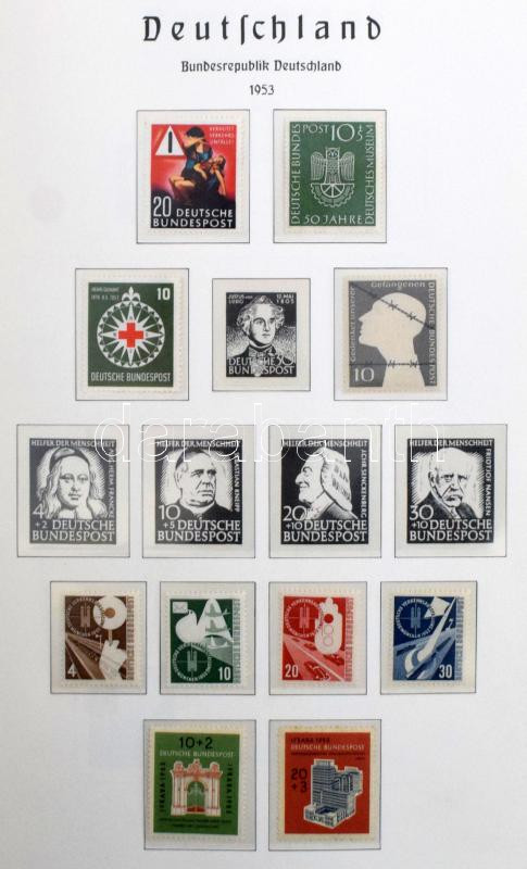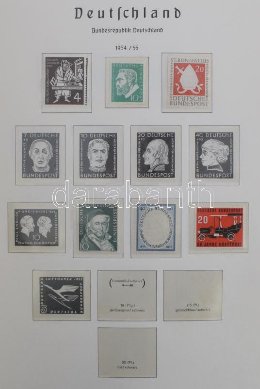 NSZK gyűjtemény kezdemény 1949-1974, gyengécske anyag néhány tartalmasabb időszakkal szinte új állapotú Leuchtturm falcmentes előnyomott albumban.