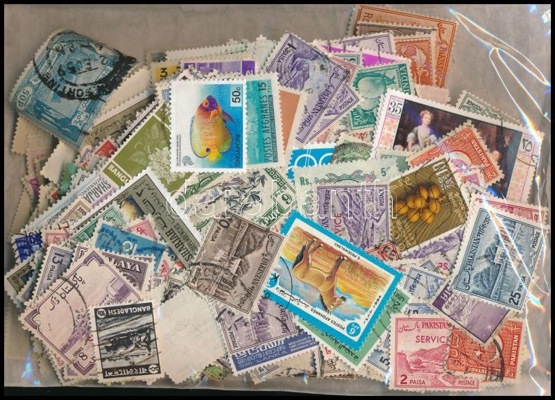Néhány száz ázsiai bélyeg ömlesztve zacskóban
