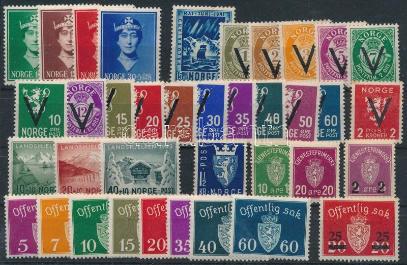Norvégia 1926-1949 6 db teljes + 3 db hiányos kiadás stecklapon (1 érték falcos / hinged)