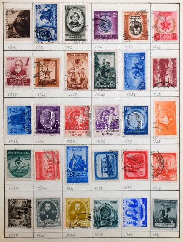 Románia gyűjtemény 1930-as 1980-as évek 6 db A4-es cserefüzetben, dobozban