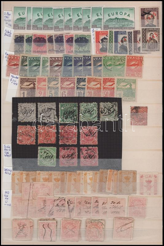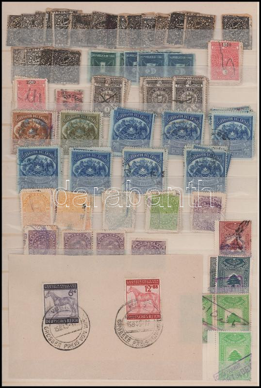 Vegyes külföldi bélyegek A4 berakólap mindkét oldalán, közte sok tízes