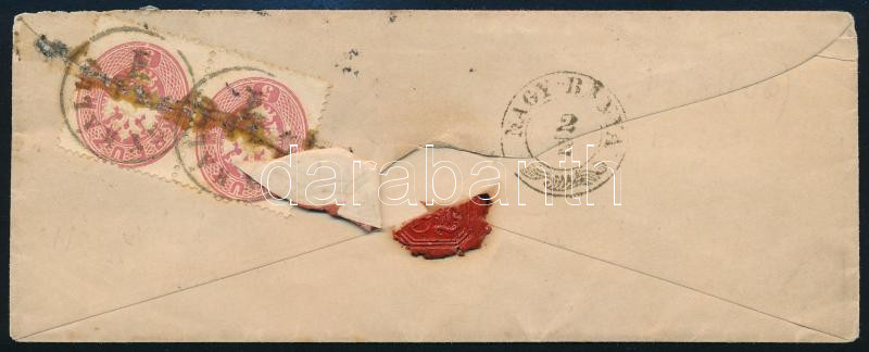 1863 Ajánlott levél 4 x 5kr bélyeggel (2 pár) a hátoldali bontáskor eltépve de visszaragasztva "NAGY KÁLLÓ" - "NAGY-BÁNYA"