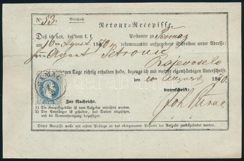 1870 10kr kék tértivevényen, "SAMAC"