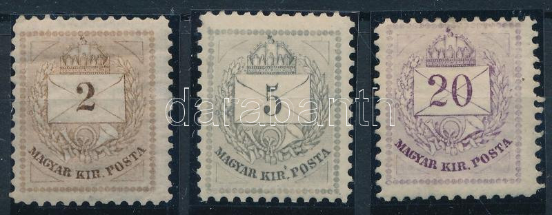 1874 3 klf Zárday-féle próbanyomat: 2kr barnáslila, 5kr szürke és 20kr világoslila