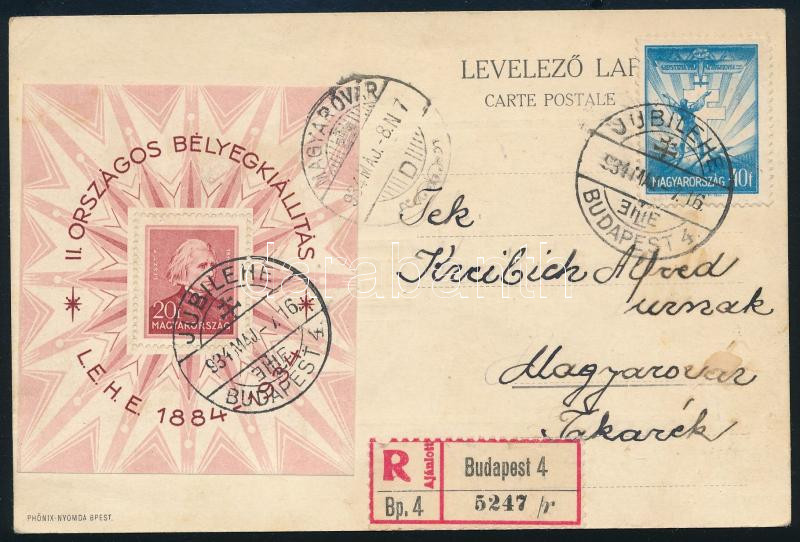 1934 LEHE blokk ajánlott képeslapon (35.000)