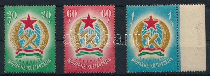1949 Alkotmány (I.) sor, 20f és 1Ft makkos vízjellel, 60f vízjel nélkül (21.500)