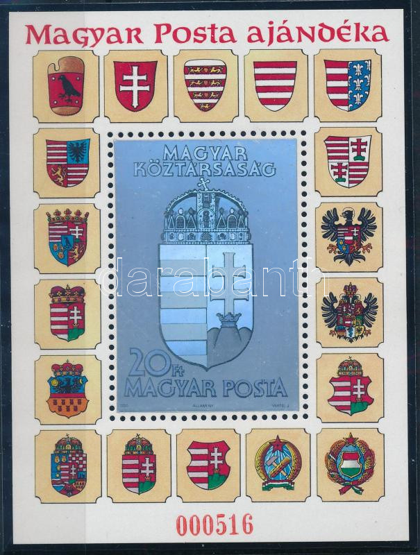1991 A Magyar Köztársaság címere II. hologramos ajándék blokk (280.000)