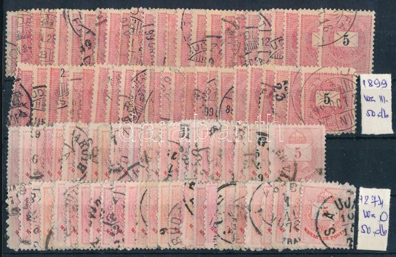 1874 50 db 5kr + 1899 50 db 5kr III. vízjellel stecklapon (46.000)