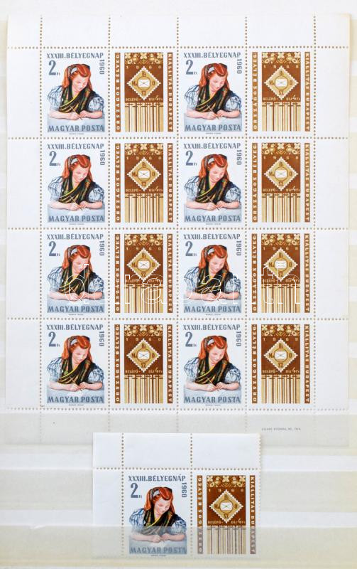 1960-1977 Magyar gyűjtemény nagyrészt pecsételt sorokkal, benne néhány postatiszta blokk, 30 fehér lapos bordó kígyóbőr hatású A/4 berakóban