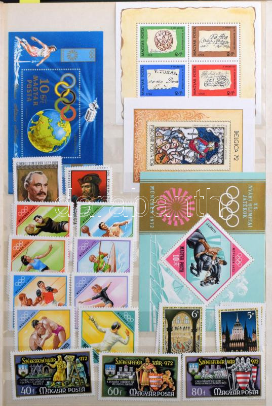 1968-1977 Magyar gyűjtemény sorokkal, blokkokkal, kisívekkel, a sorok 2 példányban, nagyrészt összefüggő párokban, A/4 16 lapos berakóban