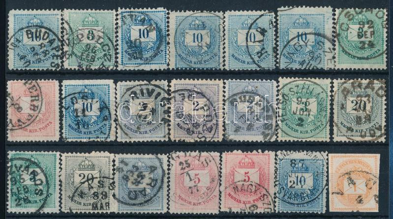 21 db színesszámú krajcáros bélyeg szép egykörös bélyegzésekkel, jó értékekkel