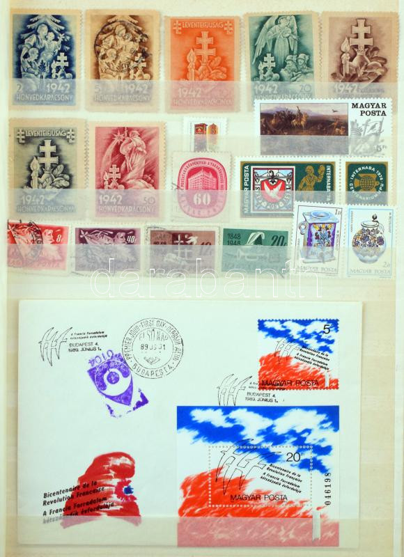Modern magyar tétel sok motívummal, teljes sorokkal, blokkokkal, néhány teljes ívvel, 24 lapos A4-es berakóban