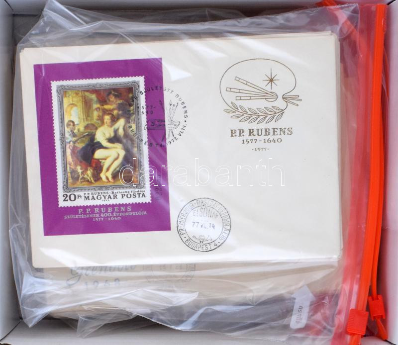 kb 70 db FDC + Bélyegkiállítás alkalmi bélyegzések lapokon a 1960-as 70-es évekből, dobozban