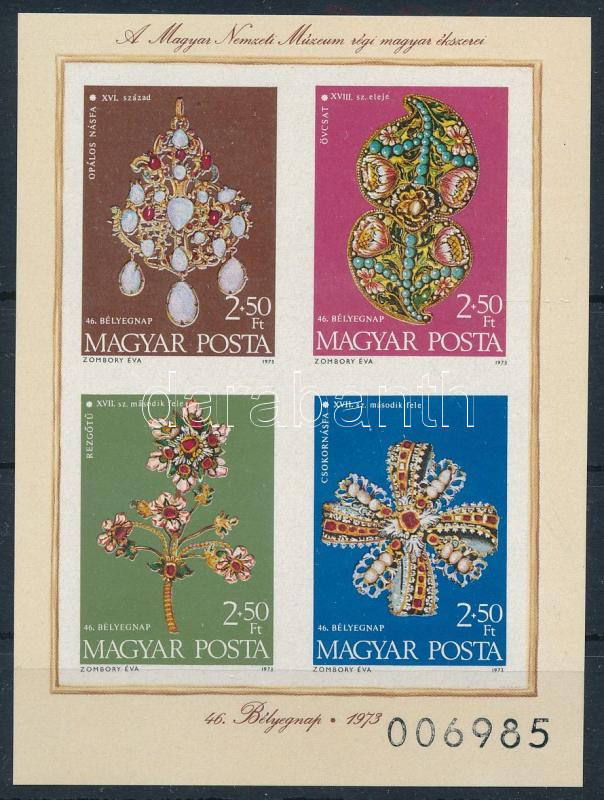1973 Bélyegnap - A Magyar Nemzeti Múzeum régi magyar ékszerei vágott blokk