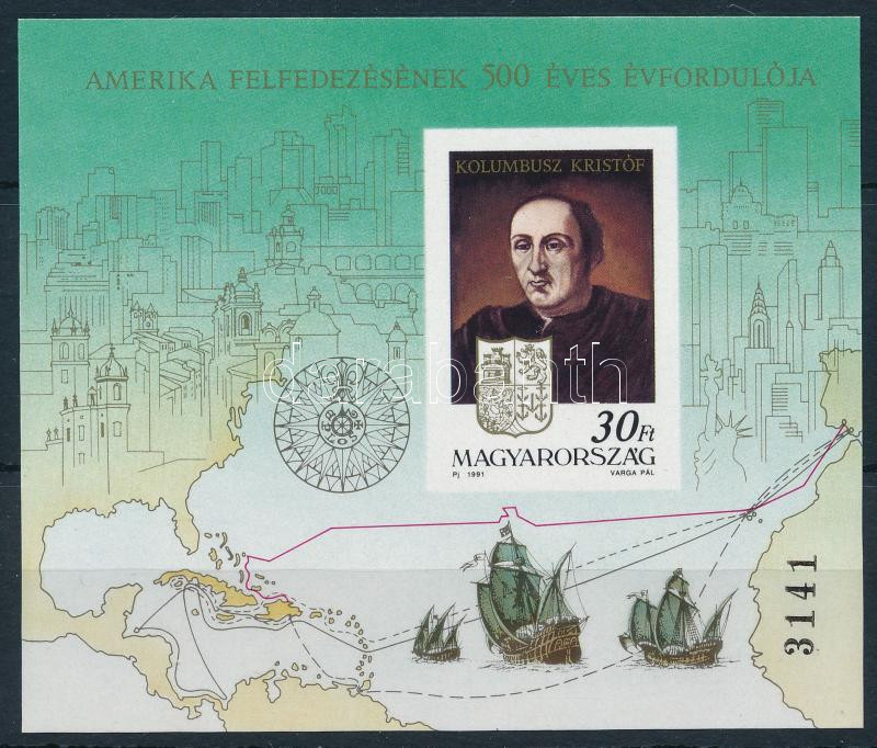 1991 Amerika felfedezésének 500. évfordulója vágott blokk (12.000)