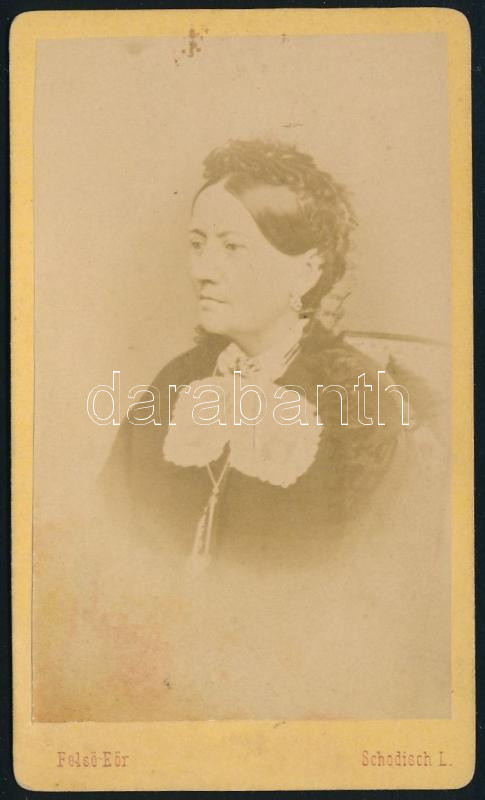 1875 Női portré, keményhátú fotó Schodisch Lajos felsőőri műterméből, karton részben szétvált, 10,5×6,5 cm