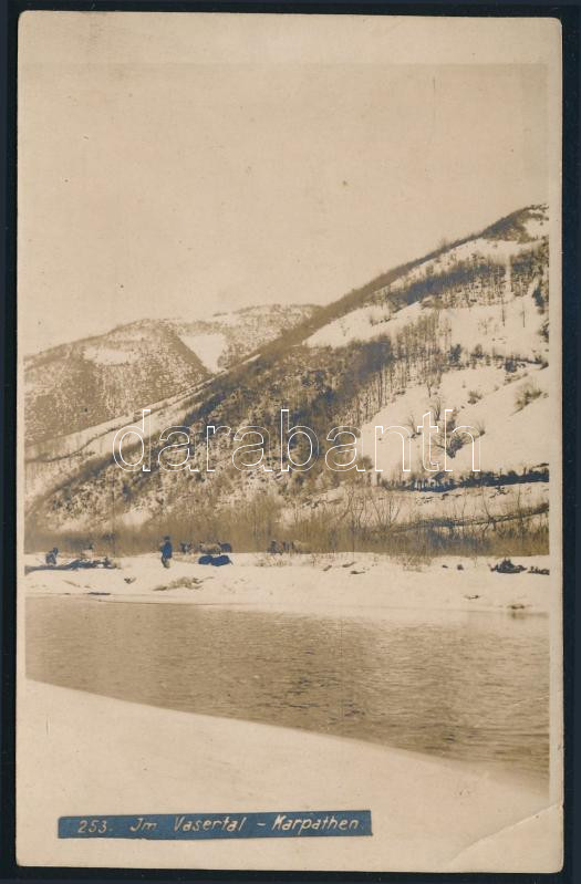 1917 Visó folyó, Kárpátok, Máramaros megye, Erdély, hátoldalon feliratozott fotó, 14×9 cm